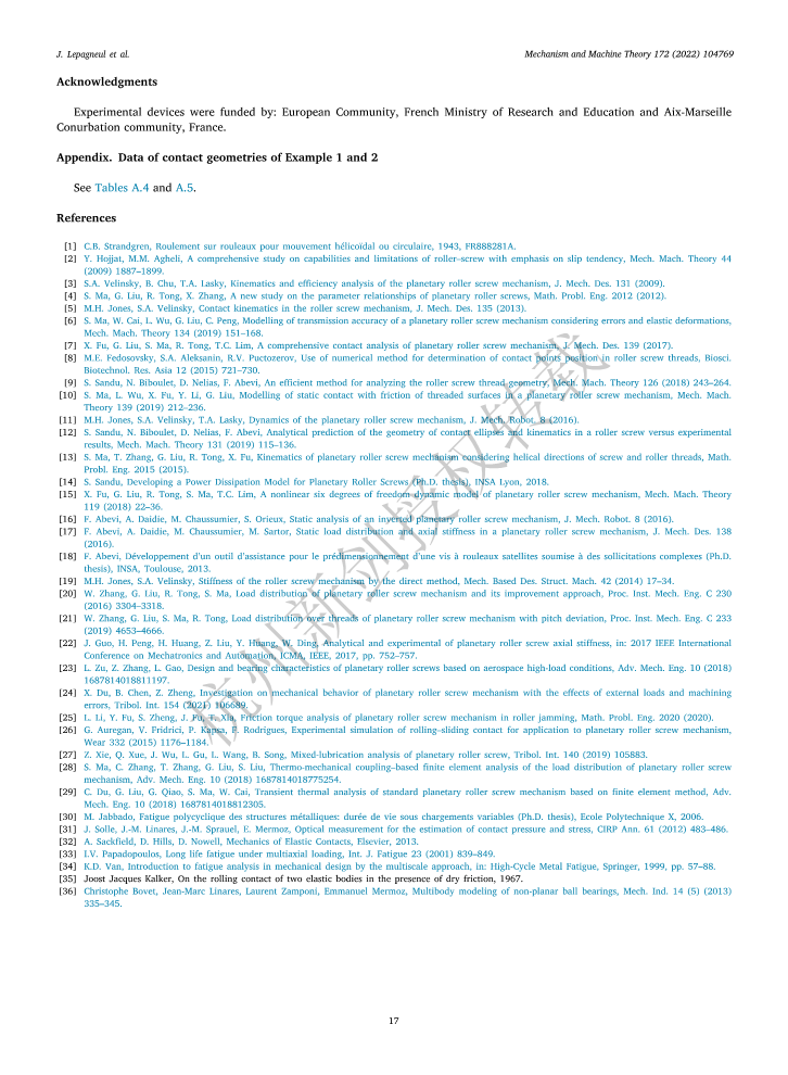 Fatigue lifespan of a planetary roller-screw mechanism(22年行星滾柱絲杠機構的疲勞壽命)